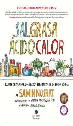 «Samin Nosrat ha logrado sintetizar en tan solo cuatro palabras una cuestion tan vasta y completa como en qué consiste cocinar. Esas palabras son: "sal, grasa, ácido, calor". Os impresionará». Yotam Ottolenghi, autor bestseller de New York Times Ganador del premio James Beard 2018 al mejor libro cocina general y de múltiples IACP Cookbook Awards La innovadora creación culinaria de la chef Samin refleja una ambiciosa manera de concebir la cocina. En esta obra, una auténtica master class para todo tipo de lectores, la autora revela su sencilla pero revolucionaria filosofía basada en décadas de experiencia, que resume de la siguiente manera: para que todo lo que cocines quede delicioso tienes que hacer buen uso de tan solo cuatro elementos. Y esos elementos son la sal, que realza el sabor; la grasa, que transporta el gusto y genera textura; el ácido, que equilibra el sabor; y el calor, que finalmente determina la textura del alimento. Gracias a sus explicaciones sobre los procedimientos y los principios de la buena cocina, este libro enseñará e inspirará a una nueva generación de cocineros a tomar mejores decisiones y a preparar platos deliciosos guiados por su instinto y el conocimiento de estas cuatro claves esenciales.